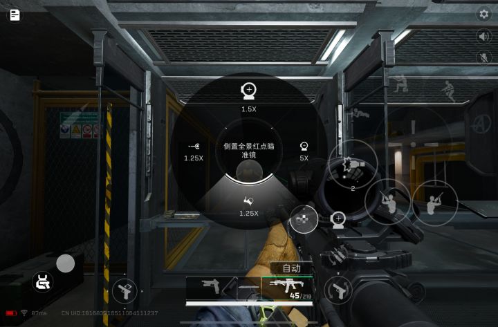 瞄具、导轨和切枪就别搞长按的操作方式了,有操作失误的风险,而且不够迅速滑动和点击就够用了瞄具:直接滑动切换到想用的瞄具(虽然可以有选项设置延迟),比点击和长按的滑动方式更快速更准确;导轨(镭射和战术手电):现有的点击一键关闭好用,但是长按展开再点击关闭就有点多此一举了,希望可以跟瞄具轮盘那样,滑动打开或者关闭单个配件;切枪:主武器 1、2 ,副武器和刀的按键在屏幕中间,离得有点远,操作不方