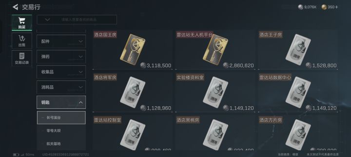 #三角洲行动建议 如图所示大家可以发现目前三角洲钥匙价格是比较高的,但是自己在机密或绝密里开过的兄弟们也知道除了航天基地的钥匙其他钥匙都是只能回本20到30万的,要是运气不好甚至无法回本。所以希望官方可以提升一下钥匙房爆率(只是钥匙房不是全图)或下调一下官方控制的大致价格。航天基地钥匙除外本身爆率足够。唯一要改的就是撤离问题堵撤离点的太多了。此外感谢大爹变电站宿舍钥匙。