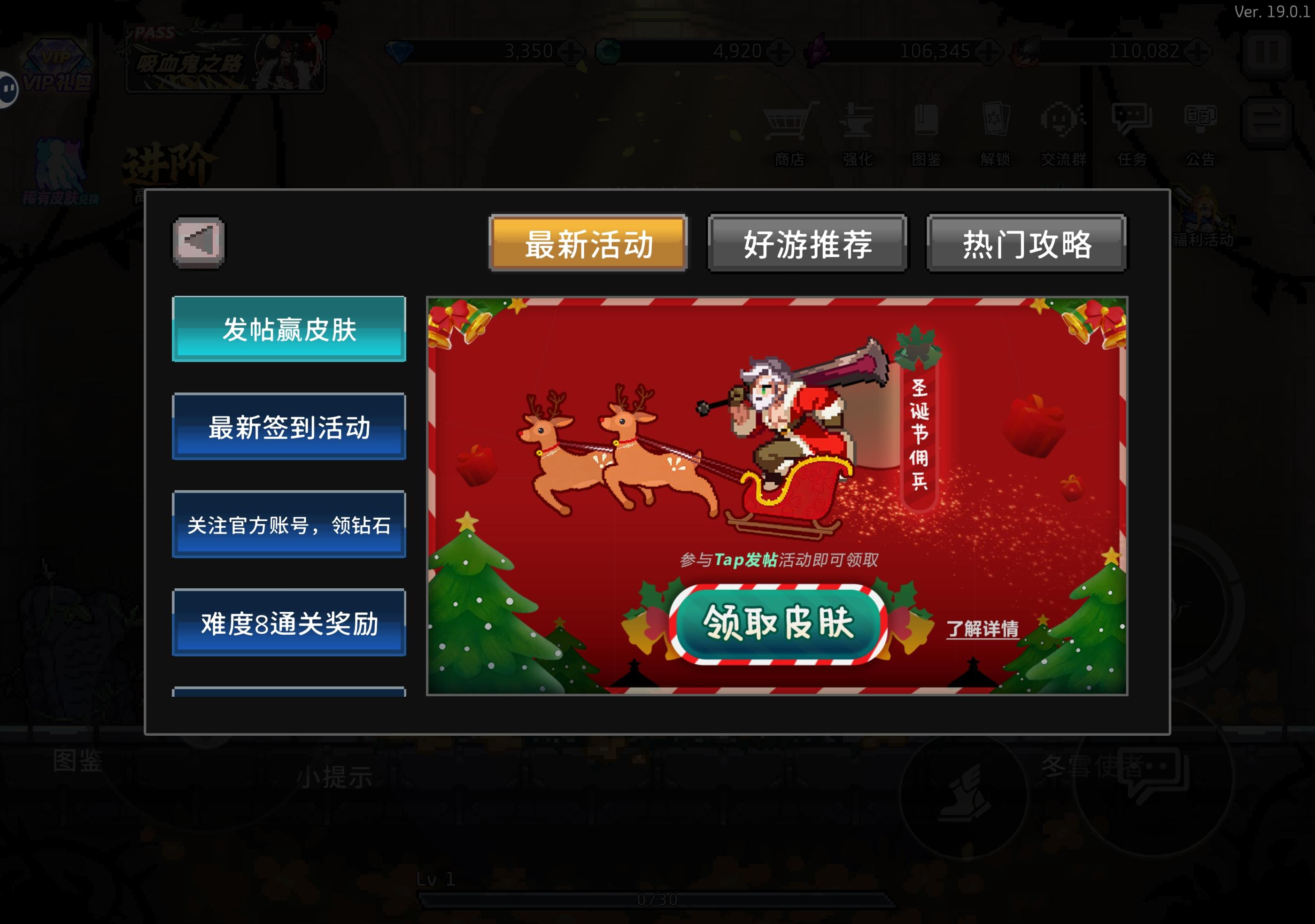 论坛发帖就可以免费领取稀有皮肤“圣诞佣兵”,发帖后游戏自动下发皮肤,未领取到的可以加群联系客服补发#无限深渊 #游戏种草计划 #游戏福利 #有奖活动 #游戏讨论 #攻略 有点上头