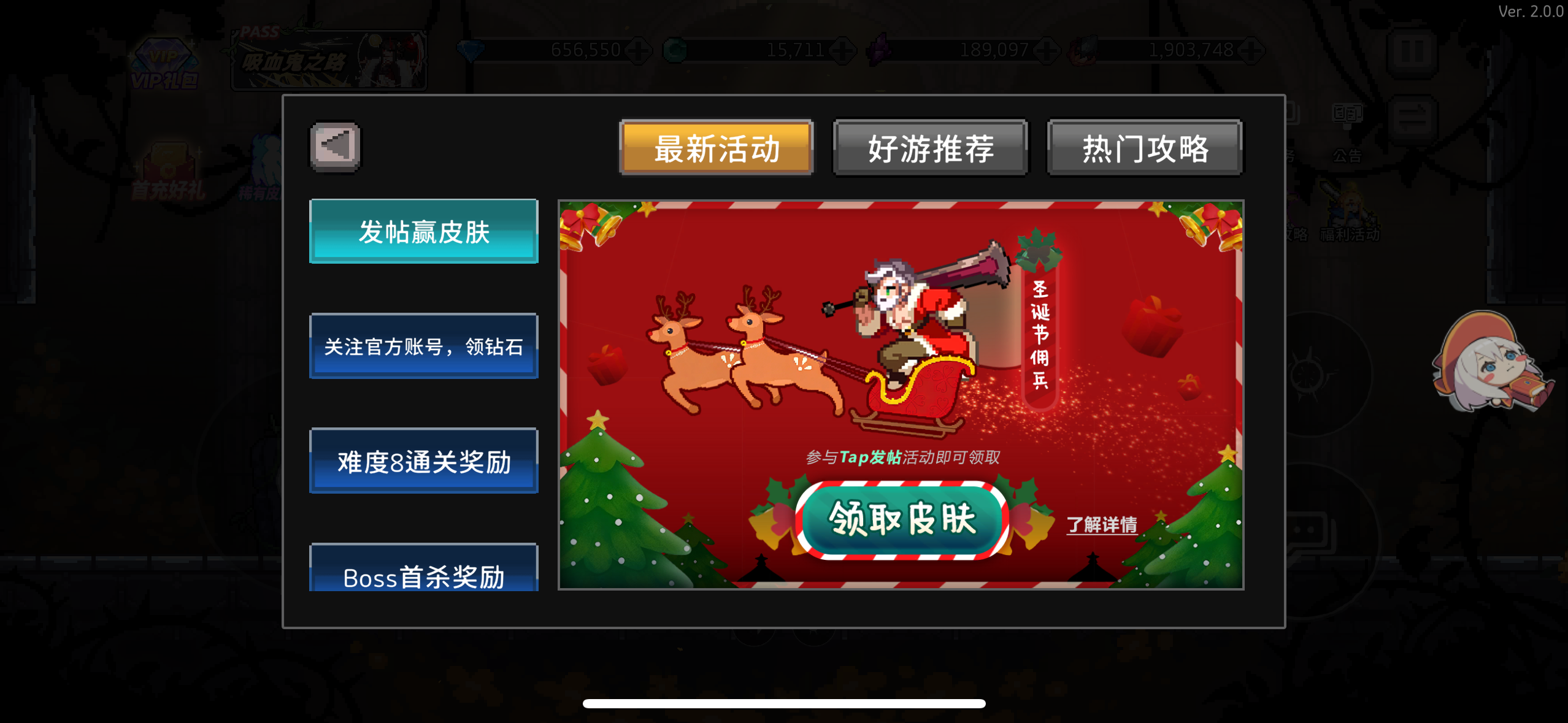 论坛发帖就可以免费领取稀有皮肤“圣诞佣兵”,发帖后游戏自动下发皮肤,未领取到的可以加群联系客服补发#无限深渊 #游戏种草计划 #游戏福利 #有奖活动 #游戏讨论 #攻略
