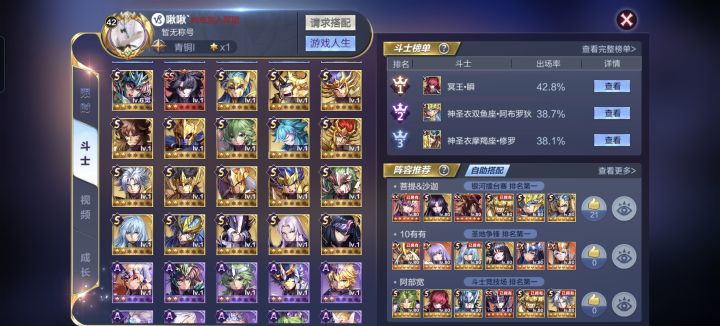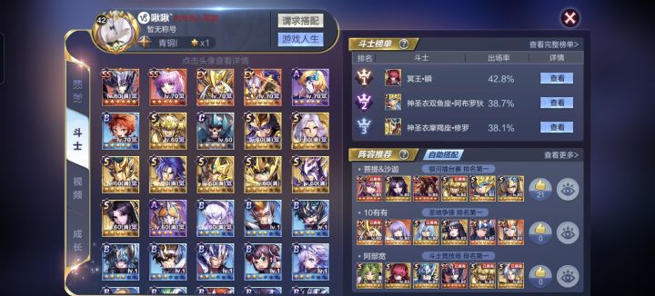 目前很多萌新玩家大多都对自己的卡池不太了解,不清楚各个斗士的强度,下面我给大家推荐几个斗士。双子座·撒加(圣衣觉醒):神一样的男人,伤害界的天花板。在伤害上限9999万之前,配合觉醒星矢伤害轻松上亿,第二球开始毁天灭地。未觉醒前只是个普通的群攻斗士。建议搭配海龙嘉隆。(角力场可买技能券)凤凰座·神圣衣一辉(圣衣觉醒):神一辉是一个比较依赖吸血的斗士,所以尽量让其吸血不要低于25%。在没觉醒前搭