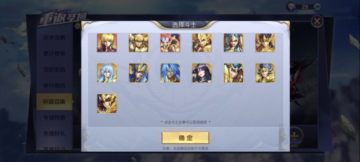 新人不要盲目抽卡。除了每个月出新卡时,其他时候不建议去抽。这游戏心态很重要,只要玩下去,不管什么卡都是可以集齐的。脸黑没什么大不了的,很多老玩家像什么百发无s、七百没出红都碰到过,倒最后也都集齐了图鉴。特典召唤★★★ 特典会返场,如果要抽,推荐人物(PVP) 双子加隆 冥瞬 冥羊新卡召唤★★★★ 推荐理由:卡池概率up,可以签约返石头,会掉碎片 须知:每次出新卡想要抽,钻加石头最好凑够300发