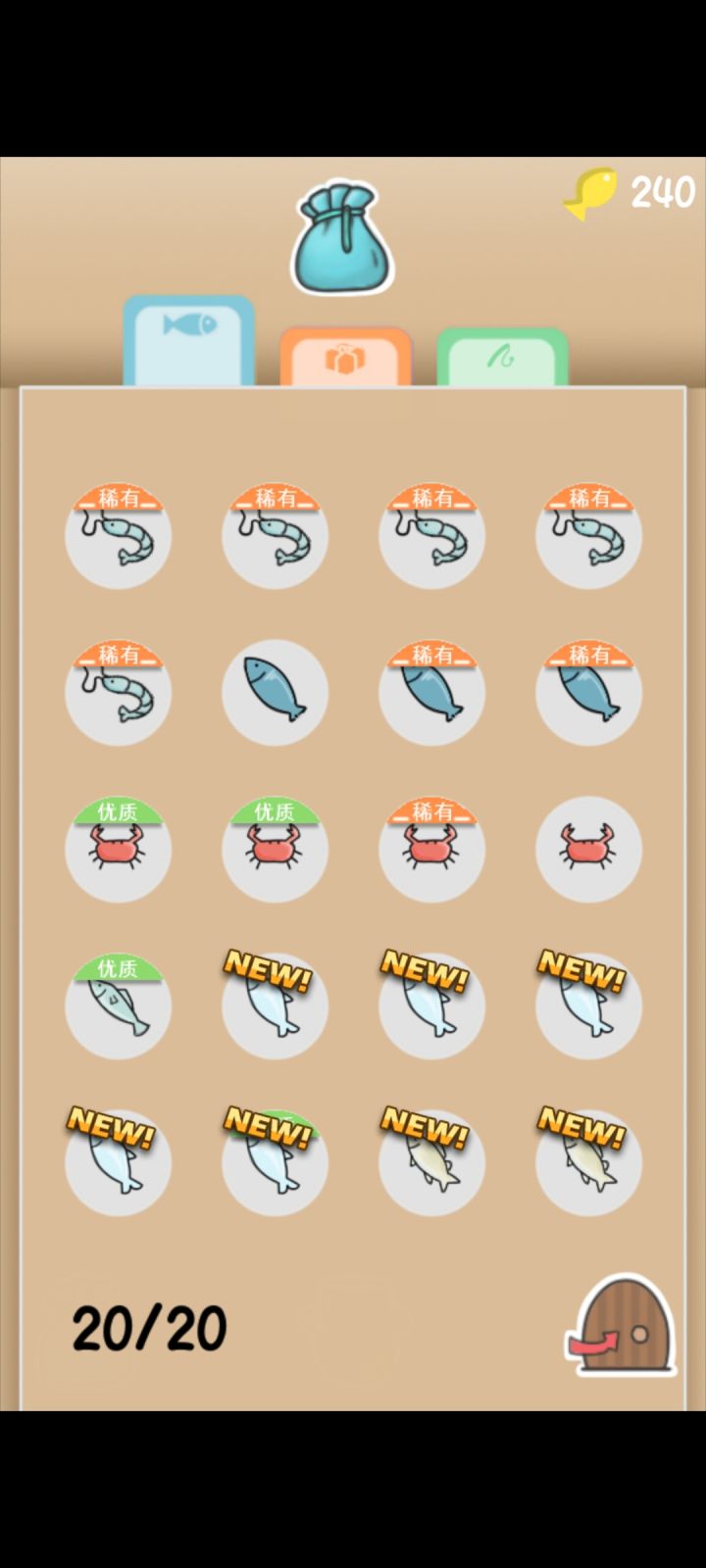关于鱼饵:点击小木牌在杂货铺购买。鱼饵每天可以用金币购买30条,每条一金币,不够用可以看广告,一次30个鱼饵(上限30次),小木牌处一天送三次鱼饵,一次15条
