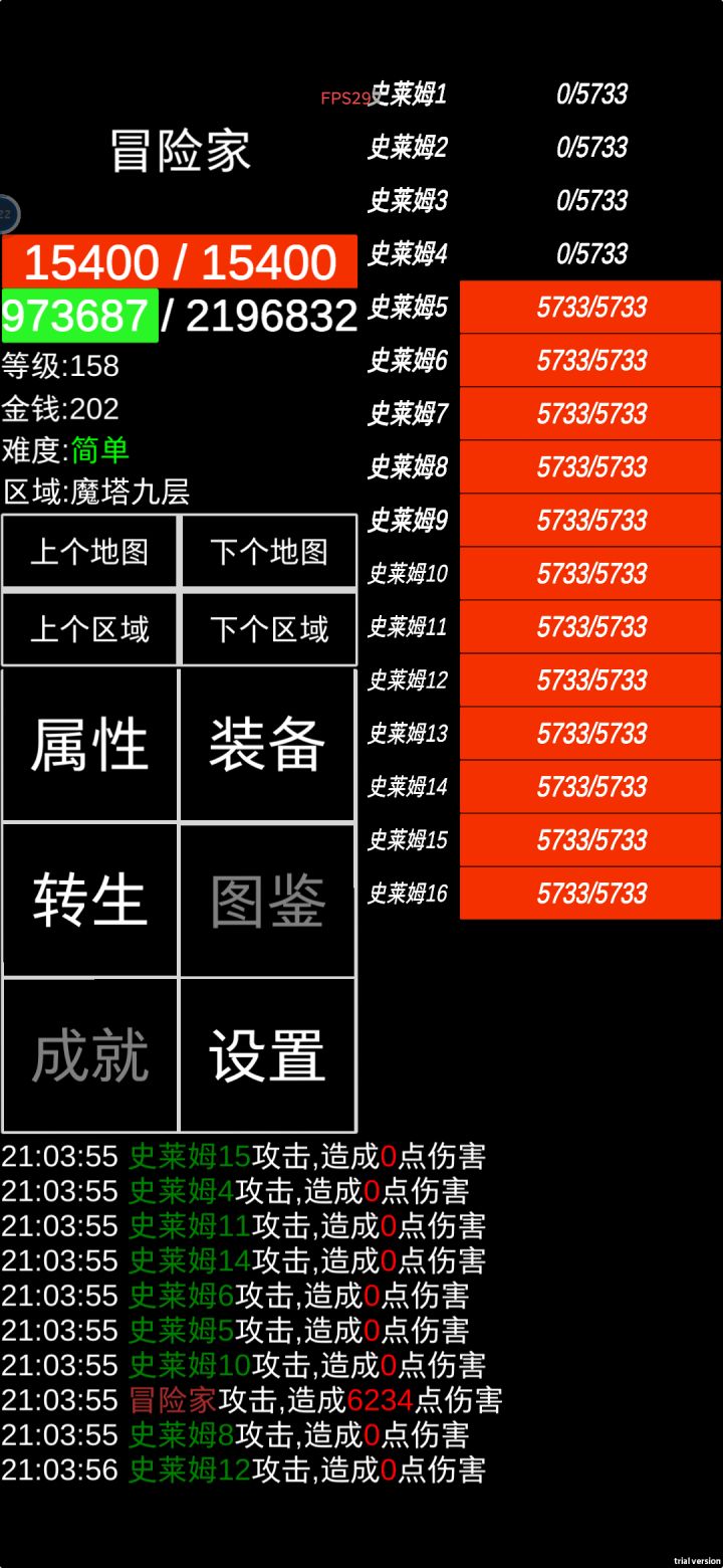 1.游戏现状:目前游戏处于测试阶段,各项功能完善当中,作者一天更新五六次,大家可以多多测试bug和作者提出来,正式服开放后再一起公平竞争。2.核心玩法:游戏的核心玩法和英雄之旅差不多,主打放置和随机属性搭配。3.关卡设置:关卡总共只有七大关,分别是新手,简单,普通,困难,噩梦,地狱,天灾。每一个大关卡怪物实力呈指数级提升,相应的,每一个大关提供的宝石属性也呈指数级提升。4.属性介绍:游戏属性