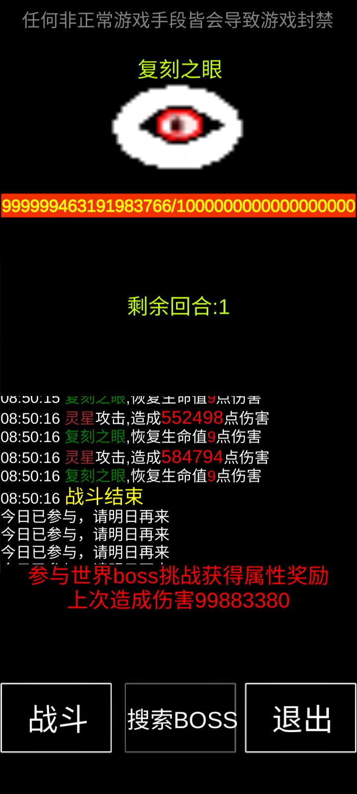 打完世界boss没有属性送?