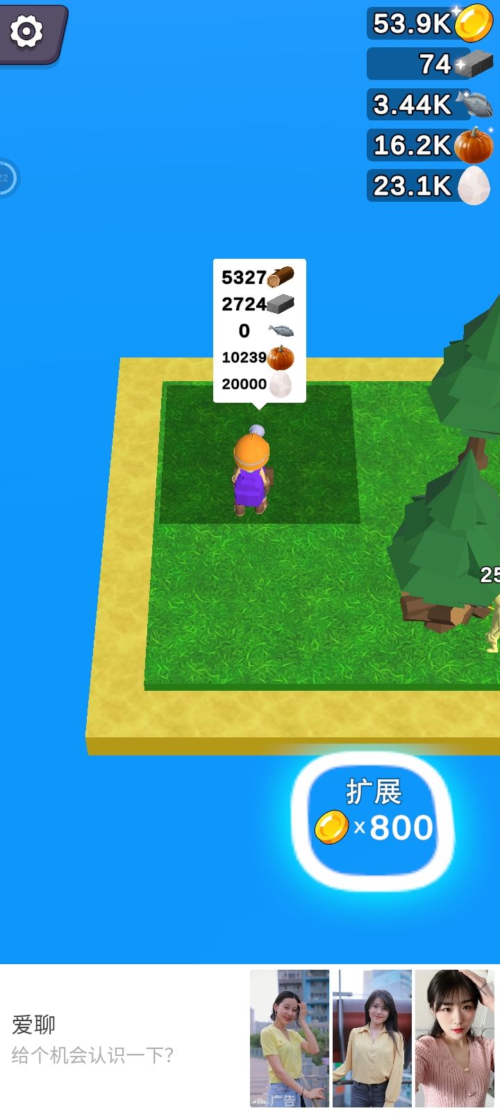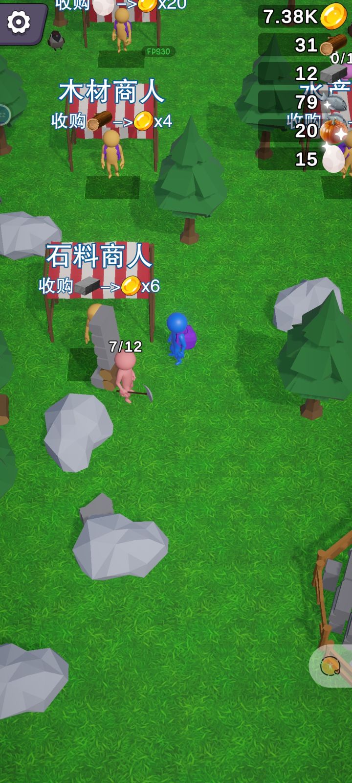 游戏目前陷入了循环,有一些玩法上的建议: 伐木场设置工位将木头加工成木板,升级增加工位,一次加工的数量以及缩短加工时间;采石场设置工位将石头提炼成铁矿,升级同伐木场;码头设置工位,捕捞船直接捕捞一个鱼池所有鱼(有动画)码头出发,装满返航,升级增加船移速,容量;工位占用工人,自带一个初始工位,升级需消耗对应加工材料增加机械厂,消耗加工材料制作各种功能机器,比如收割机直接收割一块地上全部农产