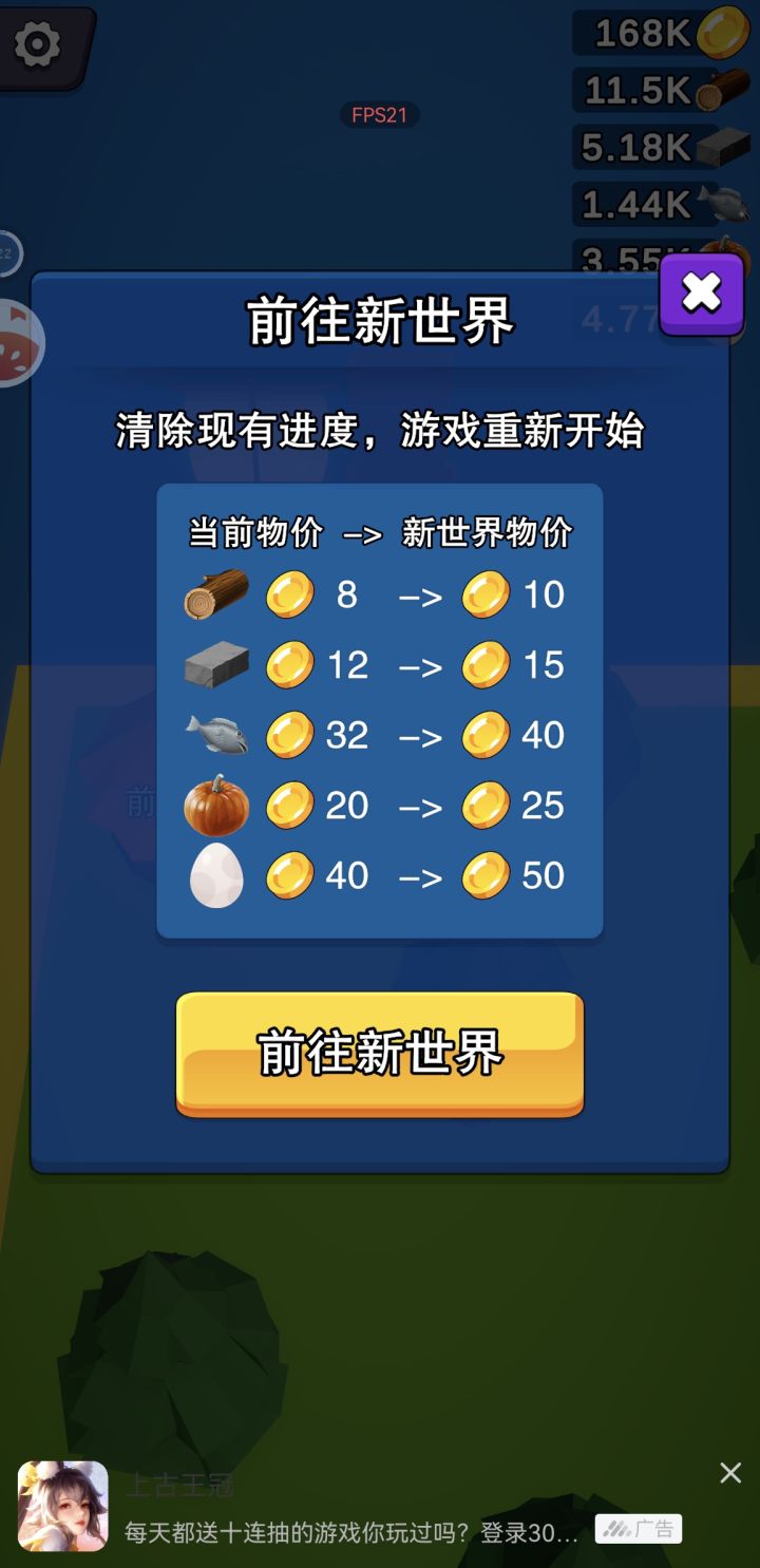 作为休闲游戏吧说实话有点肝,SLG元素也不是很明显,可以考虑一下嵌入一些消耗资源的小游戏,比如抽奖机之类的,可以丰富游戏内容每一个周目的内容一样只是价格不一样(但是鸡蛋的价格和南瓜是一个价和物价图不一致),内容上要单调一些,可以加一点科技合成之类的如果有离线收益的话应该就能成为真的挂机游戏了,笑