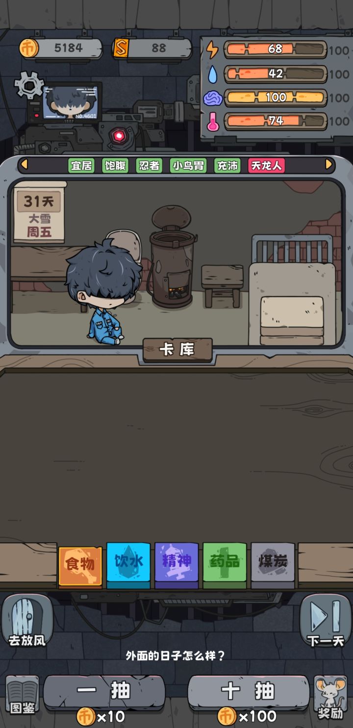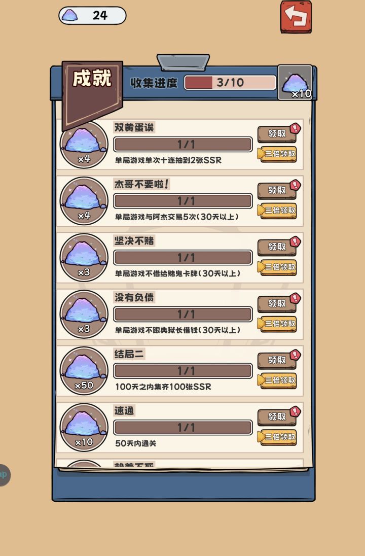 装个啵(。♥‿♥。),👌小小速通,拿下👊保证每天精神大于30,不赌博不当苦力,状态达标,备好各种药,每天都有机会交换中全部是ssr(药管够就不怕染病),4X20=80,再加上偶尔抽到的20∽50天完全可以过关,前期吞粮后期酷酷交换 就完事了试图和机制对冲,有的时候可能是机制交换的需求是精神,就有可能会出来ssr(因为这个时候诱惑最大,每次获得一次ssr就减30精神,染病的概率应该是到了20就