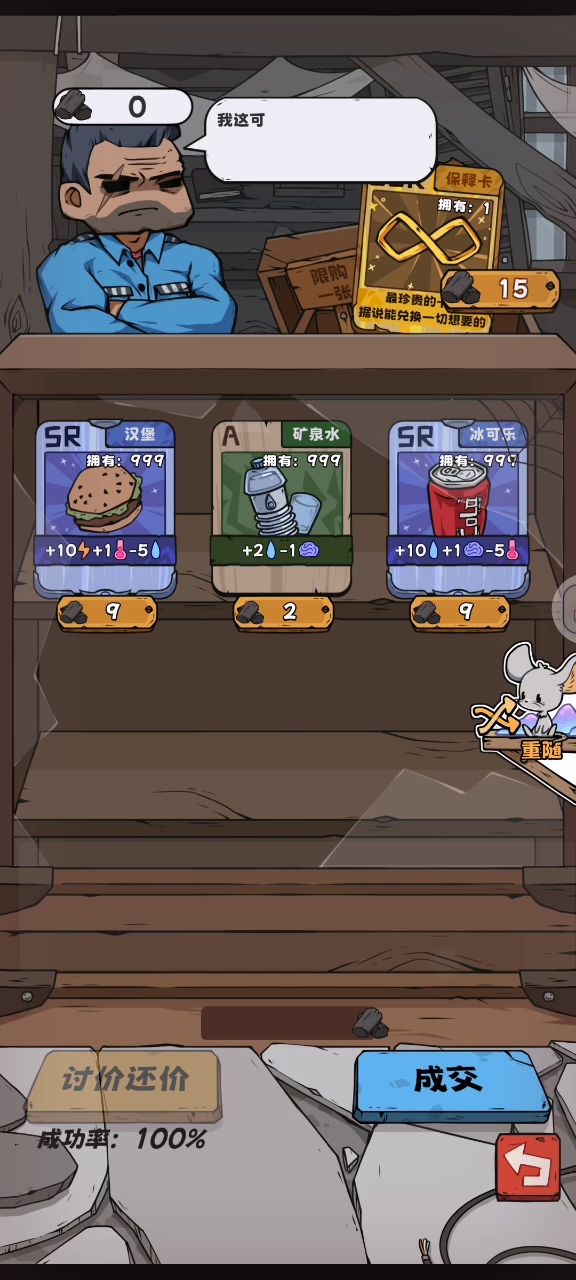 写一个无脑的攻略和我预料中的一样,这是一个凹时间的游戏2个小时左右就应该就能通关,继续凹的话6回合应该是极限(不过我懒得凹了)方法如下前期能活多久活多久,活不下去就死重开游戏反复,主要是为了完成成就获得命运之沙然后用命运之沙去强化卡牌,强化ssr抽取概率,没有就一直刷新(我强化到7点几的时候实在刷新不出来了)然后重点来了,职业无所谓,进入游戏过后,直接抽卡睡觉到第六天找监狱长贷款10