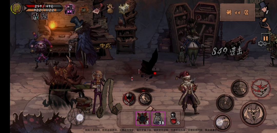 从44层倒着刷到1层,然后再进圣诞场景,恢复正常不再刷怪,出大厅也不再显示层数,但是刷的金币还在,10多万!石头、属性也还在,顺带着完成了999连击。总结: 无尽模式存档不是在1层的,进圣诞再出来容易bug。存档在1层的,重新从1楼开始爬楼的,可以用进出圣诞场景出售武器台上的武器刷金币。