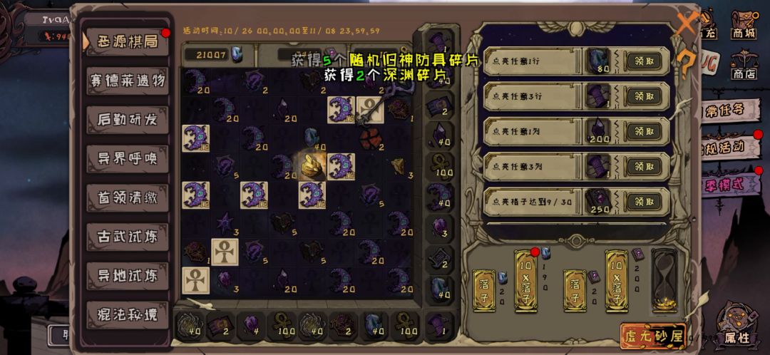每天深渊刷200个材料,一次活动消耗8000左右。疯狂三分钟。最大亮点250魂币,80骨币。