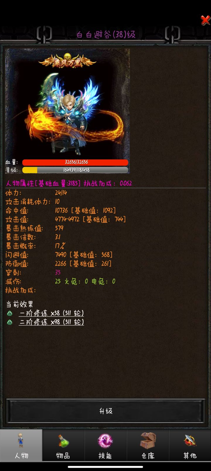 玩到六阶,心得写下与大家共享前期,可以双刀,加点全攻击,按任务走,吃一级二级丹,刷二把武器,戒指链全,找商人卖掉多余的买二件防具,就可以开始打那个开门怪了,买个持续回血的桃子,打看门怪,爆丹后十级吃掉,升级,换图继续跟任务走,到铁剑虫,就可以多刷一阵了,刷一些好的防具换上,等中午12点,晚上7.30—8.30 9.00—10.30,就可以刷一阶西门了,出武器,戒指,链,钱还多,摄灵石,强化石都有