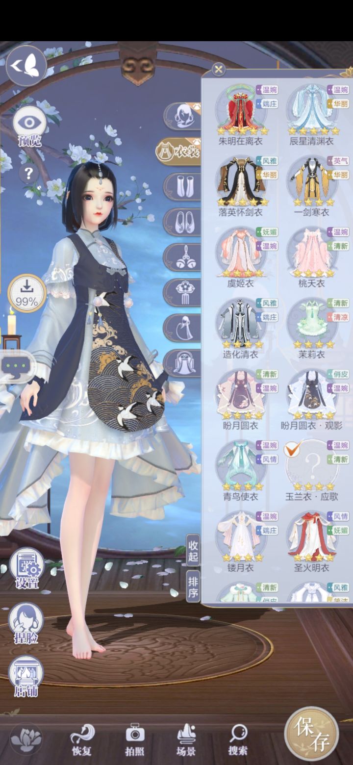 点击的衣服是玉兰衣.应歌,切换不了还是还是显示盼月园衣.观影。这个下载图标一直都在下载。