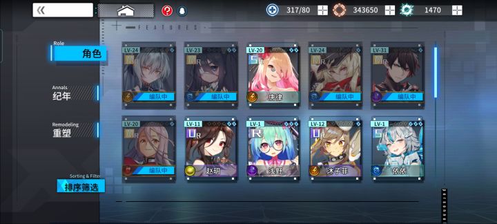 先说点基本的,萌新大哥MR推荐K和珞珈,这是现在比较热门的两个MR,K刷图很好用包括爬塔的无限A,珞珈单体伤害高,送的澪高练度之后也是很好用的,现在PVP人手凤林,澪PVP的表现要比珞珈好。纪年方面K占有欲/一点突破,珞珈一点突破,澪反对测/占有欲。辅助的话铃风,凤林是现版本两个比较万金油的辅助什么队都可以搭配,想专一属性队的话就用属性辅助。(现版本PVP必带凤林,全场异态免疫克制所有属性队),还