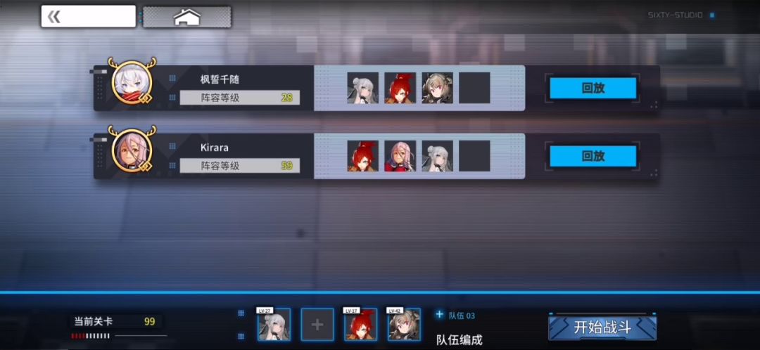 从八十层开始,楼主就是用这套阵容打到九十九层的,没有用k和珞珈,参考无限普攻的思路,这套阵容对等级要求不高,锦云无要求,玲风26级点出脉冲炸弹A,君临改造点出行动激活,羽飞等级高一点就好,但要点出君临节能,危机应对,游击战术