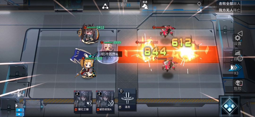 以下是*误区*:1、一定要两张以上的回忆片段2、一定要近打远or远打近3、不能点K的点燃改造先说阵容再来解释为啥上面三点都是错误认知阵容很简单,K带回忆片段、4跟虞君啥都不带就行打起来的思路需要分情况来讨论:①首先是存在两个敌人在一条线上能被K第一回合用俯冲轰炸打到的情况K走过去俯冲轰炸(卡牌数-1+2)→K使用连击(卡牌数-1+2)→K再次使用俯冲轰炸(卡牌数-1+2),此时已经