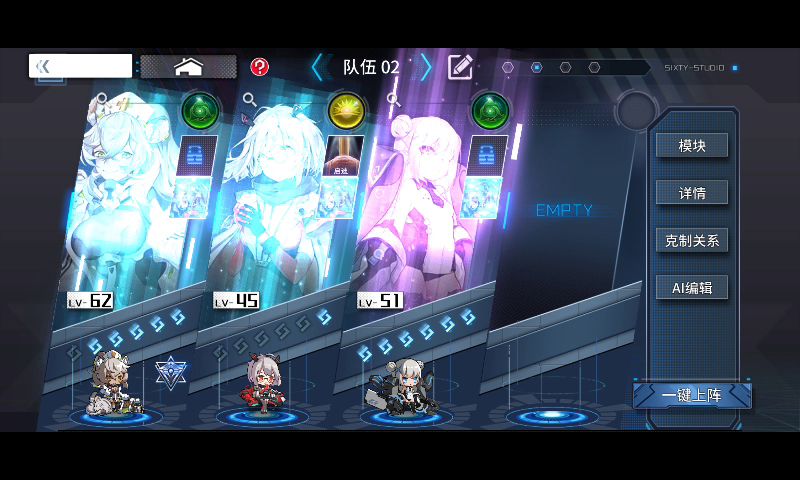 两个都带纯真的所在,模块带急冻枪、军刺,如果K的练度低就加个绷带。