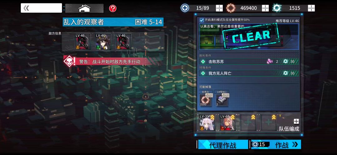 详细角色数据图在楼主其他帖子可以看,K60级+鱼25级左右,这种比较平民,比较极限的过法,主要靠站位,注意一定要在3回合内处理掉苏苏才有机会满星过。这个关卡要巧用平A,把怪物打远,和怪物保持距离打消耗。