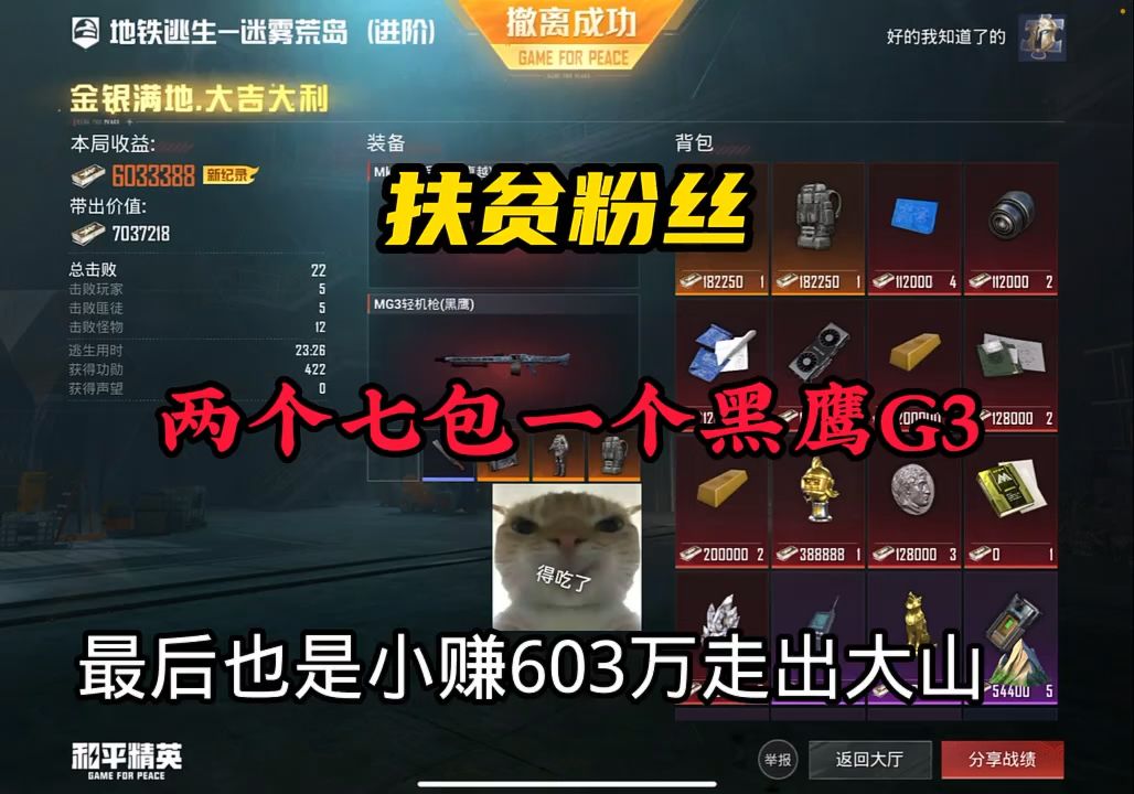 两个七包一个黑鹰G3小赚603万成功帮粉丝走出大山 #和平精英地铁逃生 #现秀 #地铁逃生