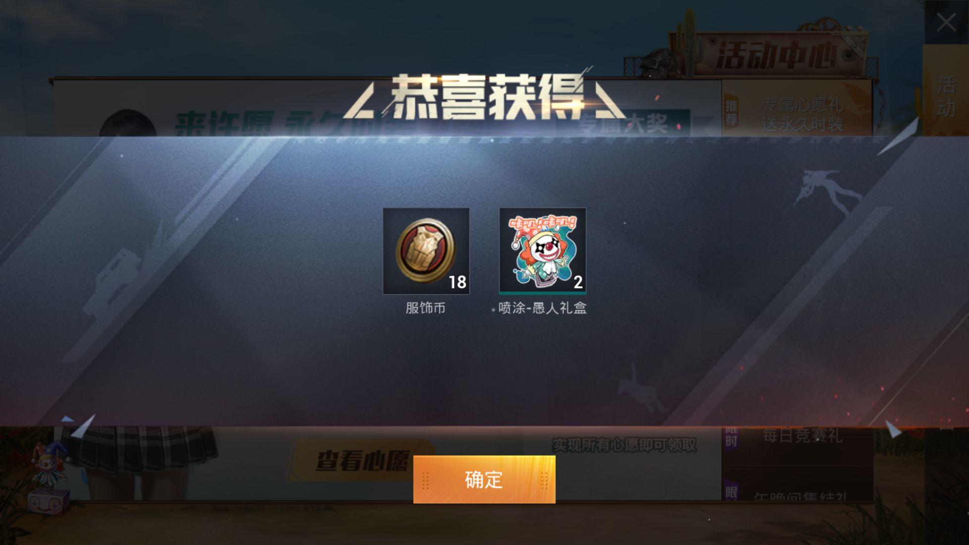 就是在活动的最左下角有个箱子样的东西,特别小,连点好几下后送个愚人节的奖励,一些服饰币,喷漆啥的 (=´ω`=)。。。
