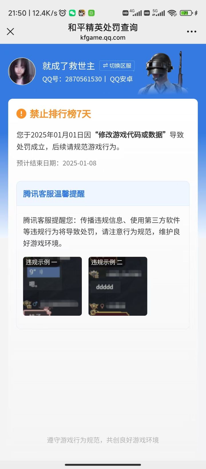问:我成功举报游戏内违规玩家,他排位分都被清了,为什么一段时间后他又解封了?