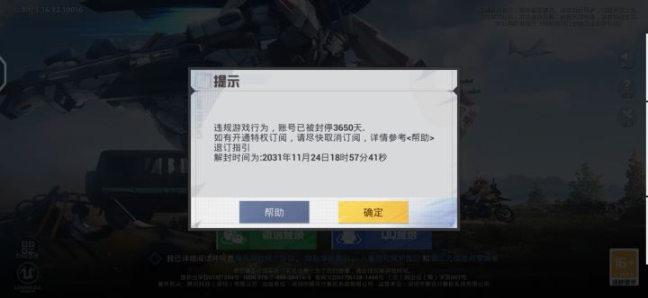 首先,我没有进行账号外借,租赁,账号一直都在我自己手里,我也没有开外挂,也没有修改游戏画质和帧数,更没有使用过第三方软件。我从2020年2月份接触了这款游戏,我玩了两年,也暂时是个中级巡查员,10个王牌印记,我在11月26日4点左右进行了我最后一把游戏,打完那把游戏我就去吃饭了,然后我也就没有上线过,等到我晚上10点左右我想玩游戏的时候发现账号被封禁10年,我一头雾水。直到我登录和平营地,我看见小