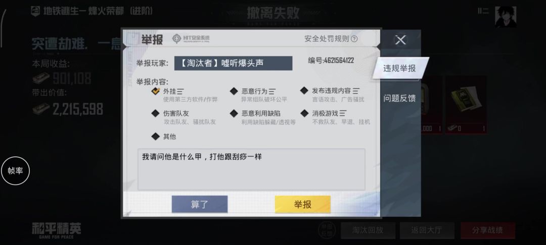 我现在发现经典开挂的人变少了,相反的地铁开挂的人变多了,这个月我举报不下数十次,一个没被封,我真的忍无可忍,别人光明正大透视演都不演了,官方还像个软脚虾一样,这就是你们打击外挂的力度吗?软弱无力。。。就算击杀者的队友才是透视,那你好歹给他整个坐挂车小套餐啊,真搞不懂你们怎么不分青红皂白的。#和平精英 #地铁逃生 #外挂 #透视