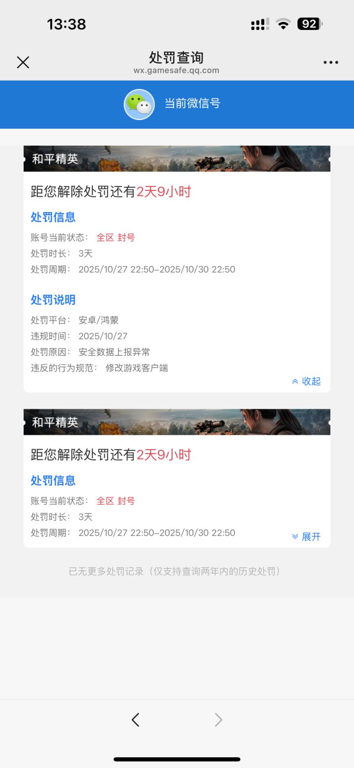 账号申诉:游戏昵称:china_1234数字id:3425877216账号:微信账号区服:安卓模拟器问题描述:用的是腾讯模拟器,没跳检测,没开挂,没开第三方软件,有可能是其他软件造成误封,后台任务管理器确实有其他不知道检不检测的软件,但不是作弊软件,没有修改游戏,不信查看我在2020.8月的游戏视频,申请解除误判,这个号跟随我很久,是我非常用心的一个账号,同时绑定的是我的微信大号,影响我