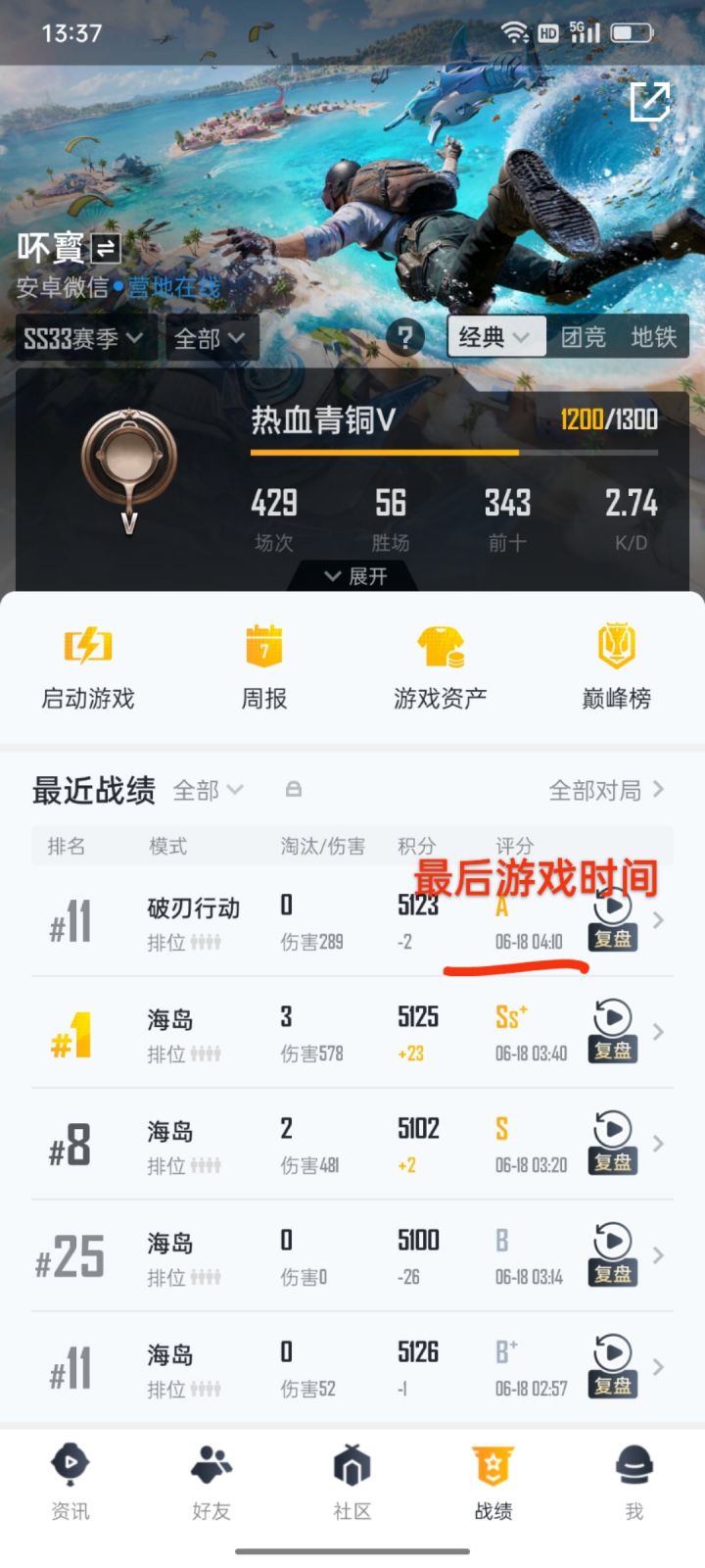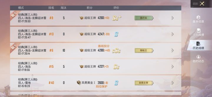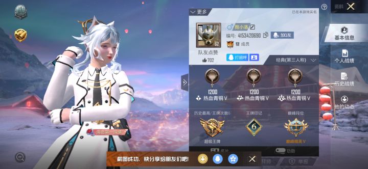 游戏昵称:炜ー数字ID:3172007617账号:Rezynb区服:安卓微信区本人与s1赛季注册,19年3月份开始玩这个游戏4年了,保持了18个赛季王牌,同时还是一个拥有巡查员衣服的老巡查员 时不时积极参与巡查视频,并杜绝游戏外挂,并且只玩和平精英这个游戏,但于2022年9月22日借个游戏好友,因为我是部队当兵的不怎么,第一时间没有发现,他开着外挂上号没开始游戏,被追封了好久 我平常跟我战