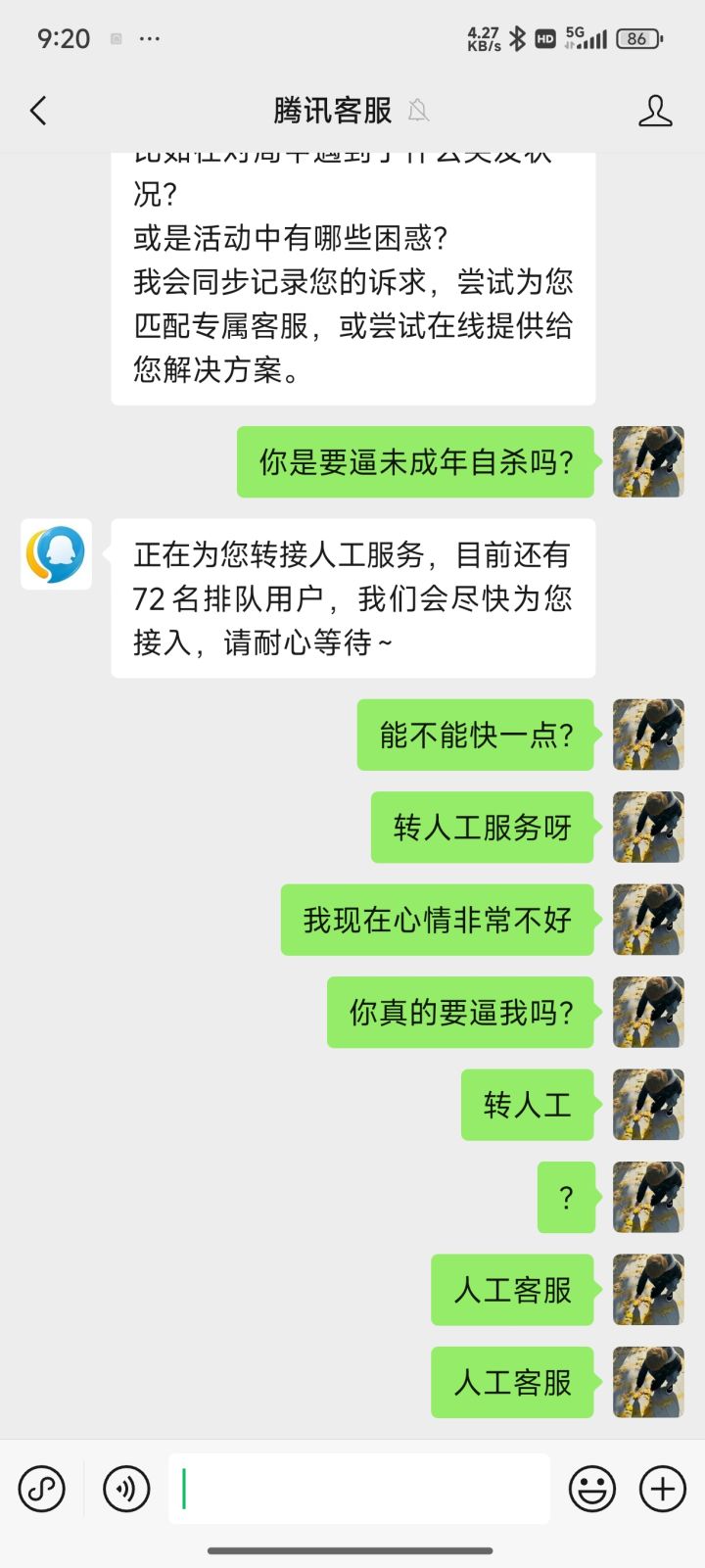 ,你希望和平加强一下腾讯客服这一类