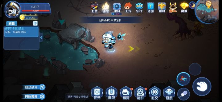 左上角的任务,到达目的地没有找到npc,任务是打那只小精灵,已经打过了,不知道怎么回事,返回飞船再过来还是一样,重新进去也没法