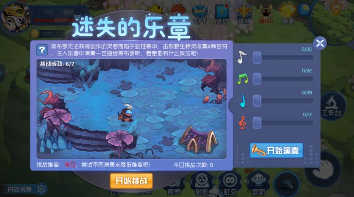 活动需要的道具为刷野怪掉落的音符(任何野怪都可以)共有四种音符。白色绿色每天掉落上限600个,蓝色红色400个(听到这些数字是不是有点慌,心想上限怎么这么多,这活动太消耗时间了吧,其实并不是哦,往下看)我们以10 10 5 5的比例演奏挑战难度就会从末日变为地狱,我们就可以挑战了注意攻击他有几率让我们恐惧,尽量多强化快速将他带走地狱难度有2000血,米瑞斯强化三次后两个大招直接带走,是不