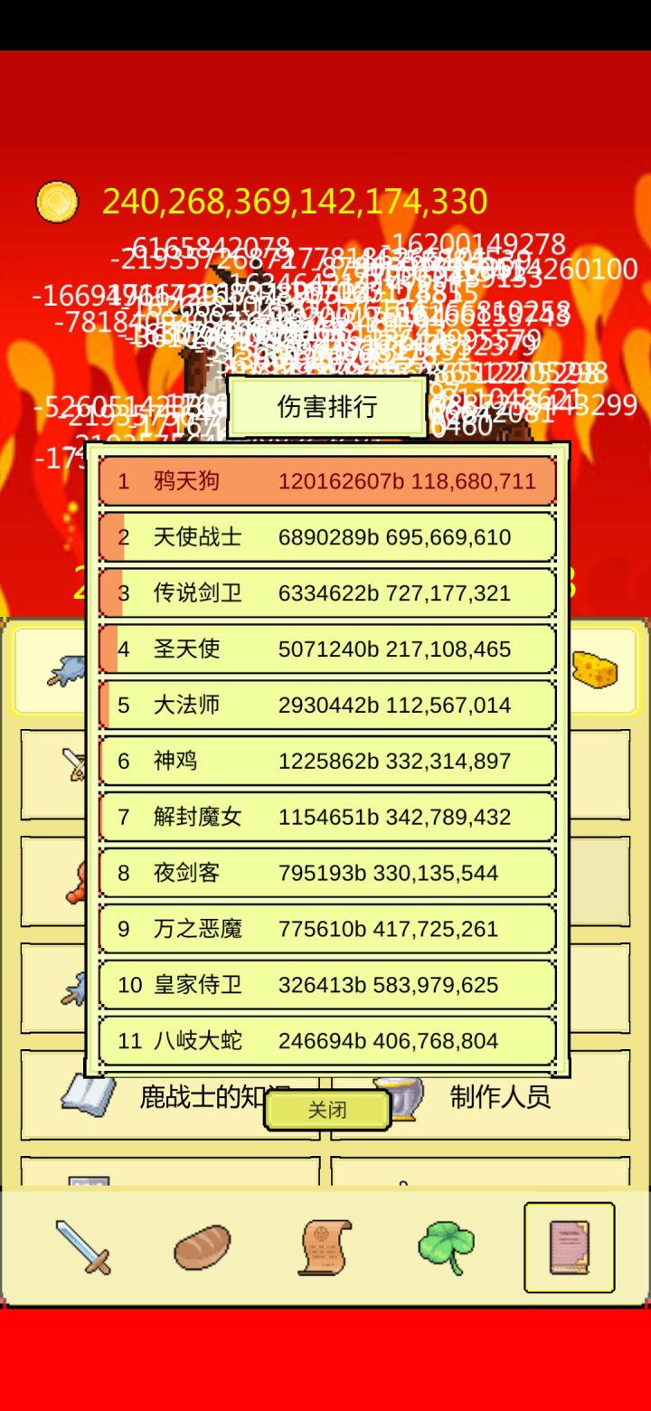 我现在有12个极限攻速的兵、一个兵攻击力2,000,000,000,000 攻速0.02 那就是一秒钟攻击50次 就是100,000,000,000,000 12个兵就是一秒钟1,200,000,000,000,000的伤害 我还有4个圣洁之力 烟雾还没有圣洁伤害就排第二了 但是现在我的金币平均2秒多才加1,000,000,000,000,000 我现在的boos是减40%的伤害 也不应该差这么多
