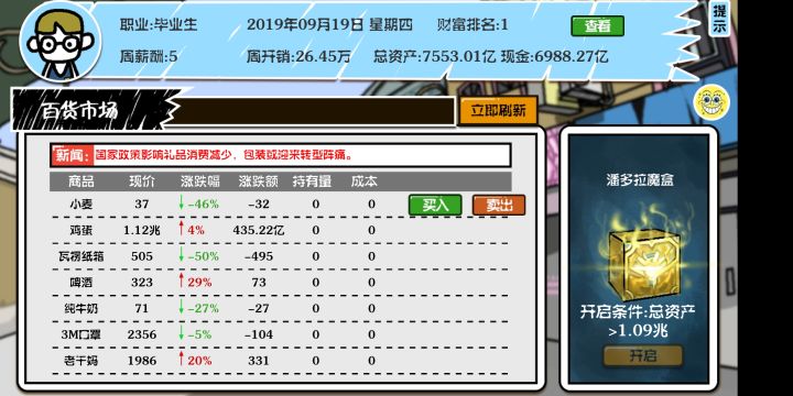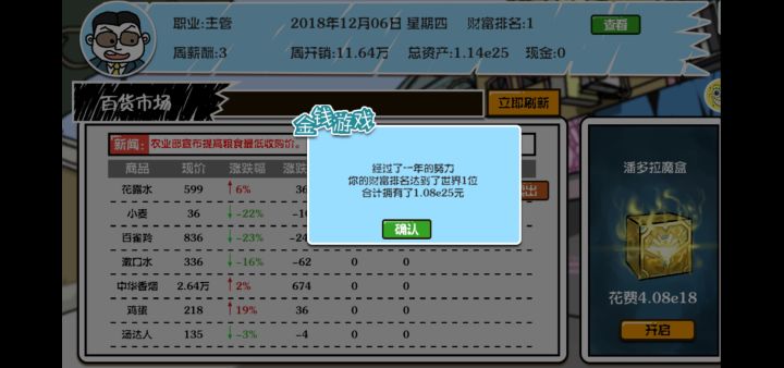过了,可惜没有玩家排名榜,希望以后能完善。看看谁更能赚钱。另外最好还能支持买空,我要把香烟做到1块钱一股。😇