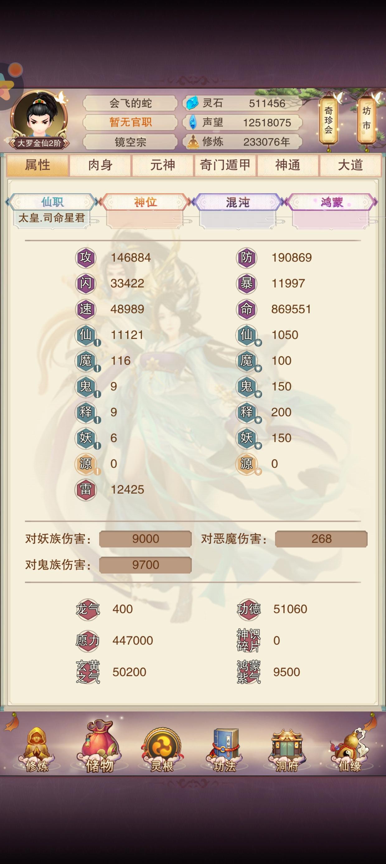 1.双帝王进度:鬼19/100,妖16/100;2.聚灵阵进度:300肉,473/537;3.鸿蒙进度:还有两百多进度就上六星了;4.其他:积极吃饼!