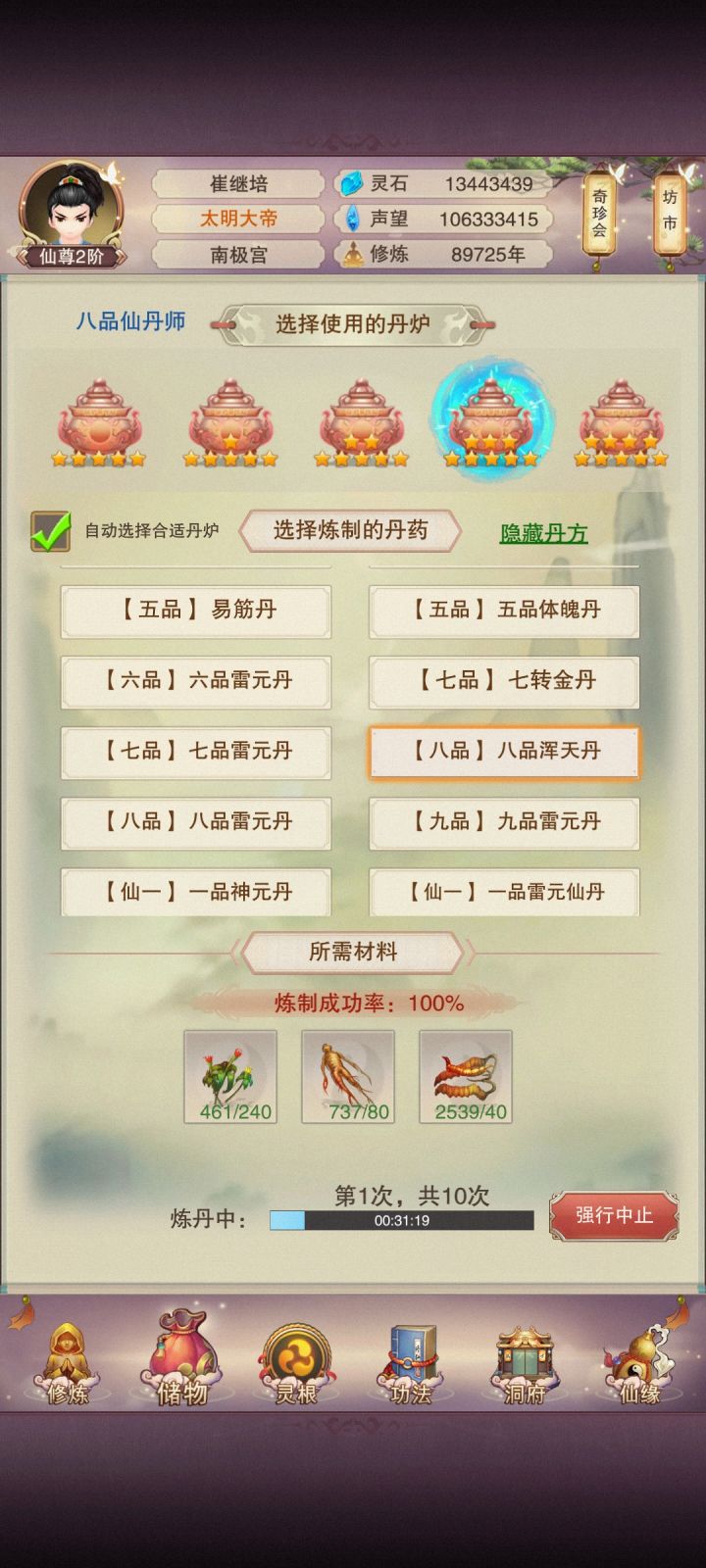 是我以为的那个丹吗,记录一下。过几天练完丹再看。确认,七转金丹,一亿修为内个。