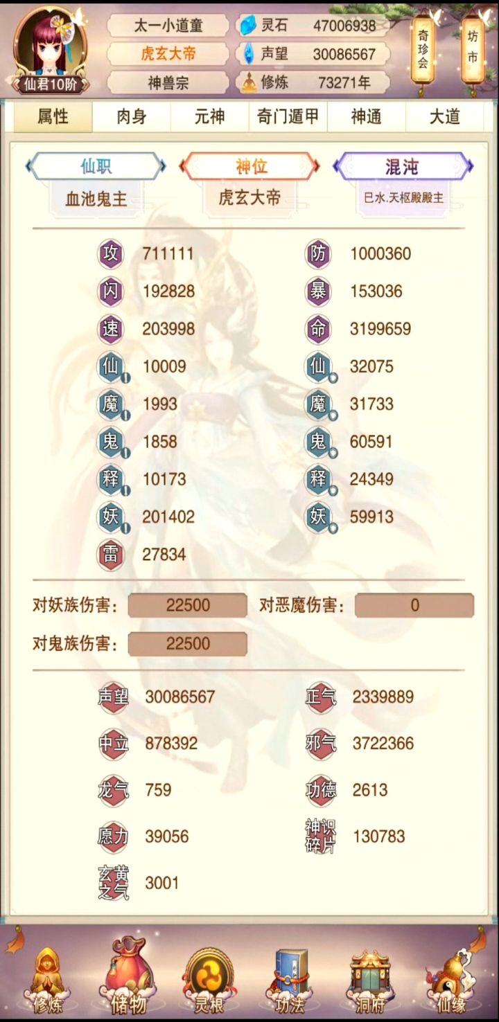 2021年7月9日截图譕:仙职:魔帝神位:紫霄帝君混沌:(对不起我没摸到譕的地方。。)