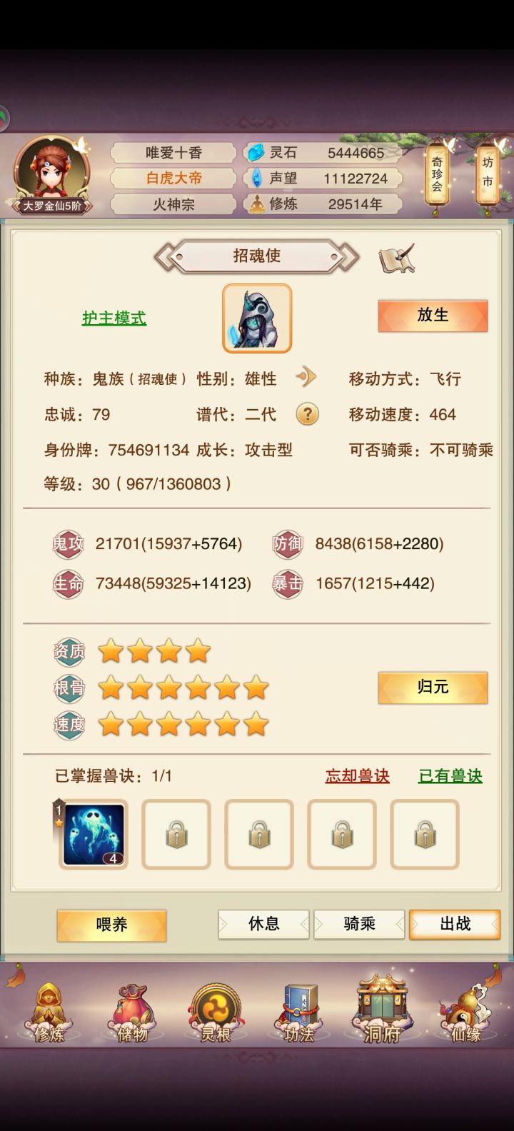 一发入魂噬魂兽昨天拿到御魔,随便来了两个蓝蛋热热身,然后换了一个金蛋开,今早一看,噬魂兽到手😂😂😂