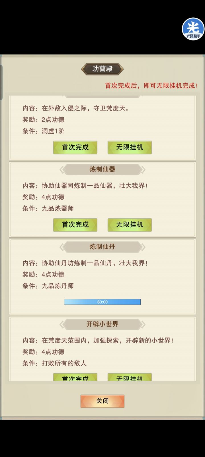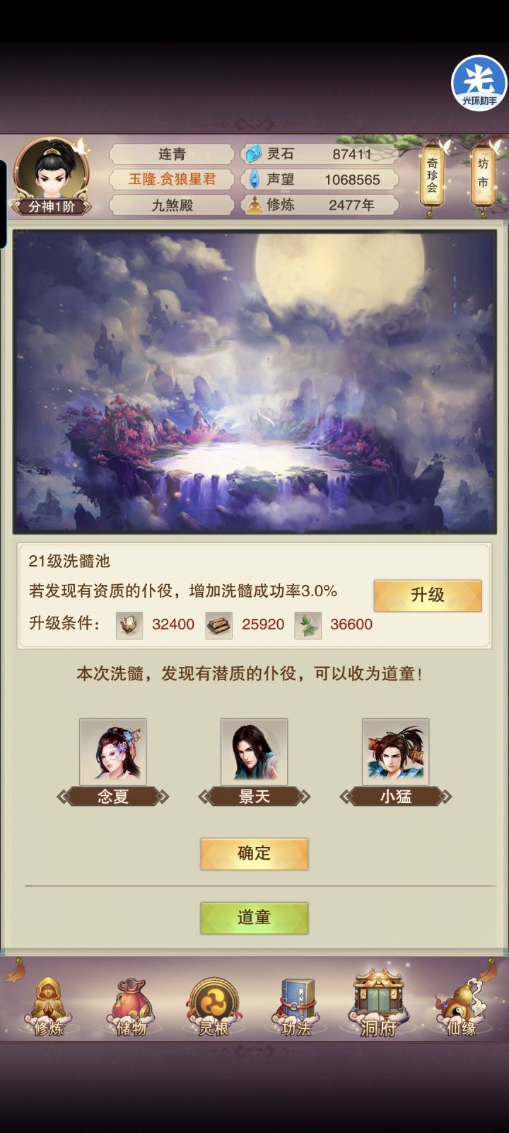 也是到了九品丹师,每日功德增加96收入,香战斗茶32,修炼好像才7,继续摸鱼71道童已洗完,在升80肉周年庆提升完后偷一波图,爽