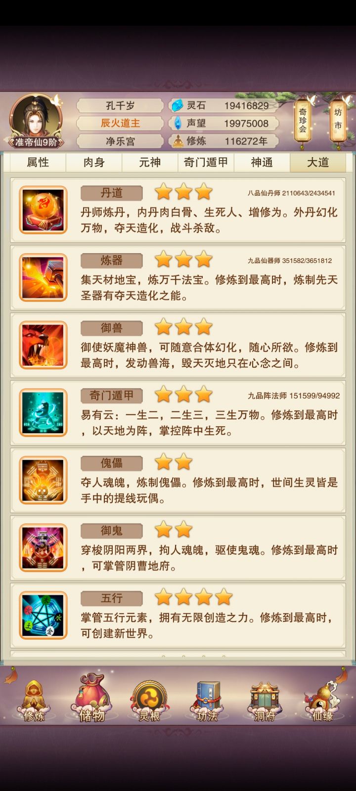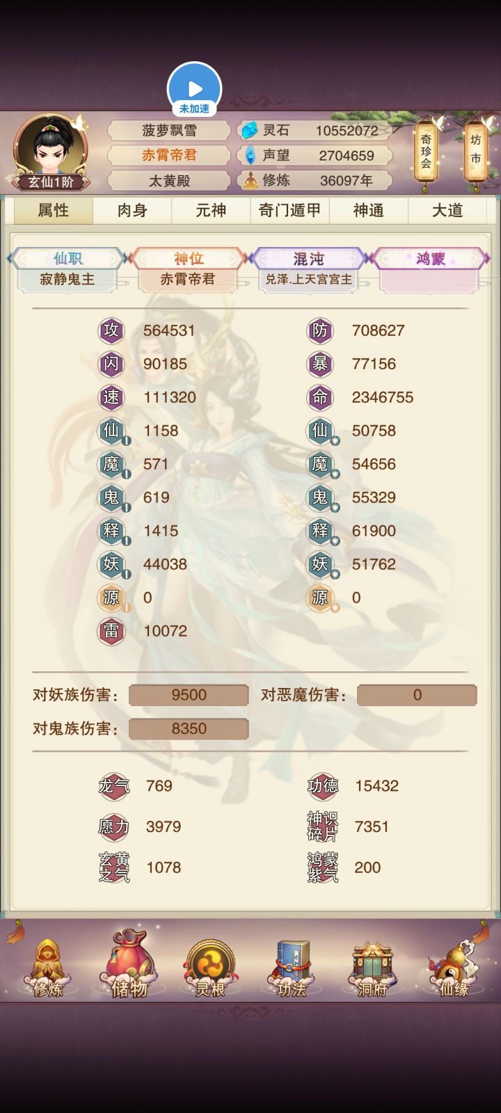 话不多说,上图目前肉身铜骨9,论道刚开第一天定个小目标,论道结束前偷过图十,上天把10个白妖丹先拿了,为以后本命做准备