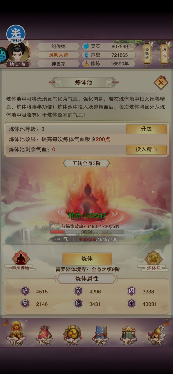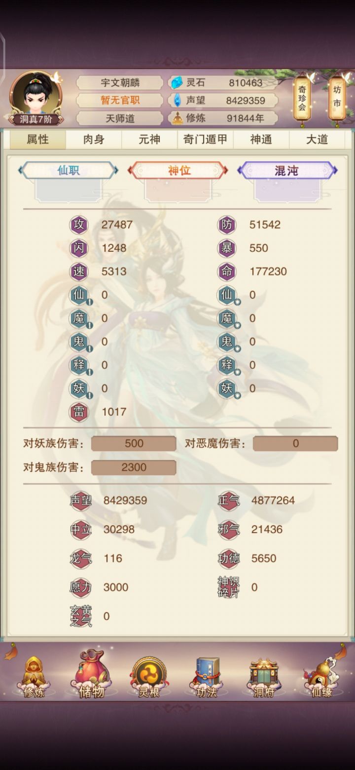 228前后属性对比。攻决还有1星和2星的没升,身法和遁术没升,属性增长是买的书和嗑的药(过神界之门要求)。228之前没炼体,228之后的炼体图也奉上,228之前到地仙没多久,228之后的妖修图也奉上