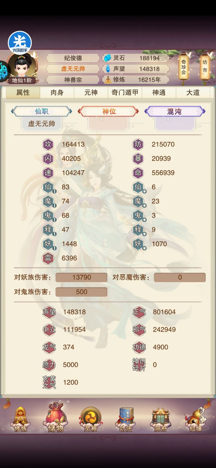 1.6万年天仙打卡,地仙期任务完成量60%,并没有本质的提升,神通6级材料还是得靠时间去磨,再接再厉,2万氪太多,熬死你们🤣