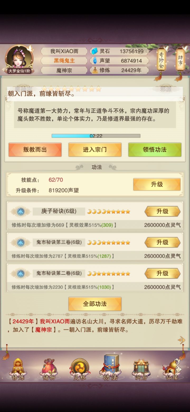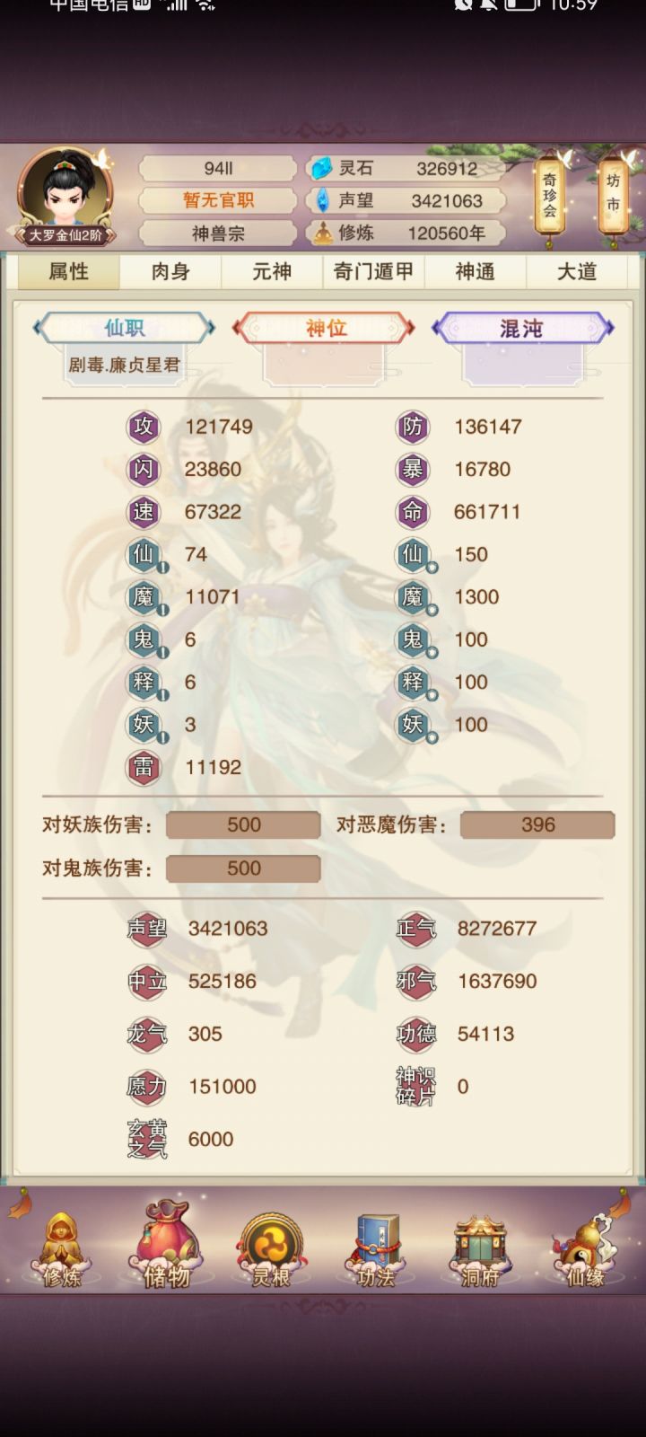 楼主之前开了个帖子专门纪念界主更替的记录,后来觉得修真历程中有更多有意义的事情需要记下来,主要是给自己一个留念.效仿本区的快乐万氪也开一个帖子专门记录日常.原来那个帖子就专门记录界主更替的大事件好了.(补充一下,楼主是4w氪.)今天刚好是渡劫到大罗金仙的日子,苦苦修炼了两万四千多年才终于到了这个境界,真的很不容易,所以就挑选这个日子作为一个开始来记录了.昨天在金仙10的时候截了一张图,想和今
