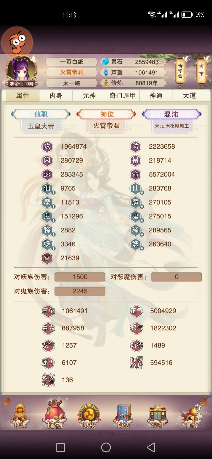 逛了这么久吧,第一次发记录贴紫府五级,熬出法相了,结果发现以前吃的法相果不算数😥