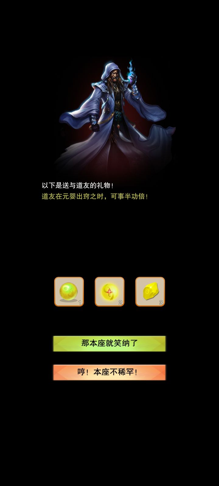 101045年前,你一介凡人因缘踏入修真界。你天赋惊人,修真1年就渡过天劫,成功筑基,开始了永无止境的修真之旅。你进境飞速,于5年结出金丹。又于50年凝出元婴,终于从万千修者中脱颖而出,在修真界有了自己的一席之地!初入修真界,你对一切都充满好奇,这是段热血激荡的岁月,你会为了修行资源频繁出入名山福地寻觅仙缘,地肺山的妖王看到了你的努力,魔王知道你的坚持。你也坚信苦心人天不负,将来自己必定能成为一