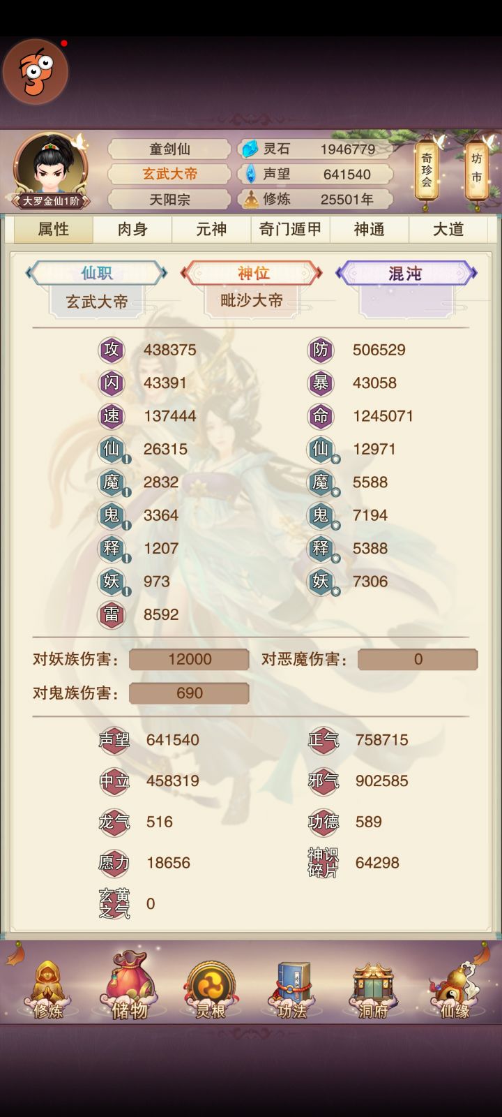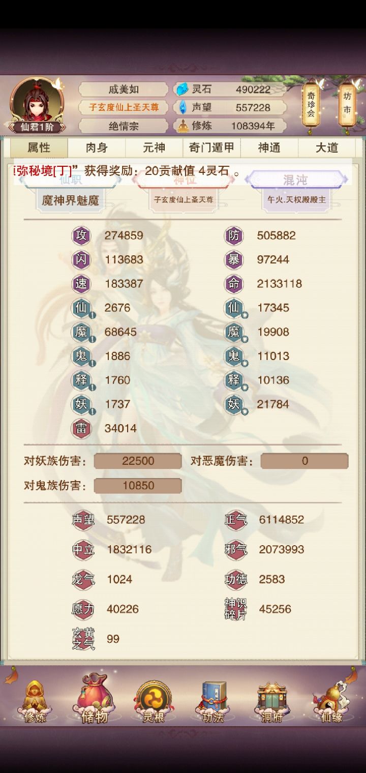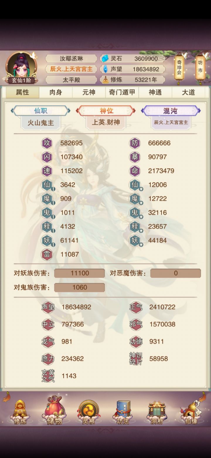 带你们看一个搁置了两年不玩,忽然又想起这个游戏的道友的属性,实在是有点拉了