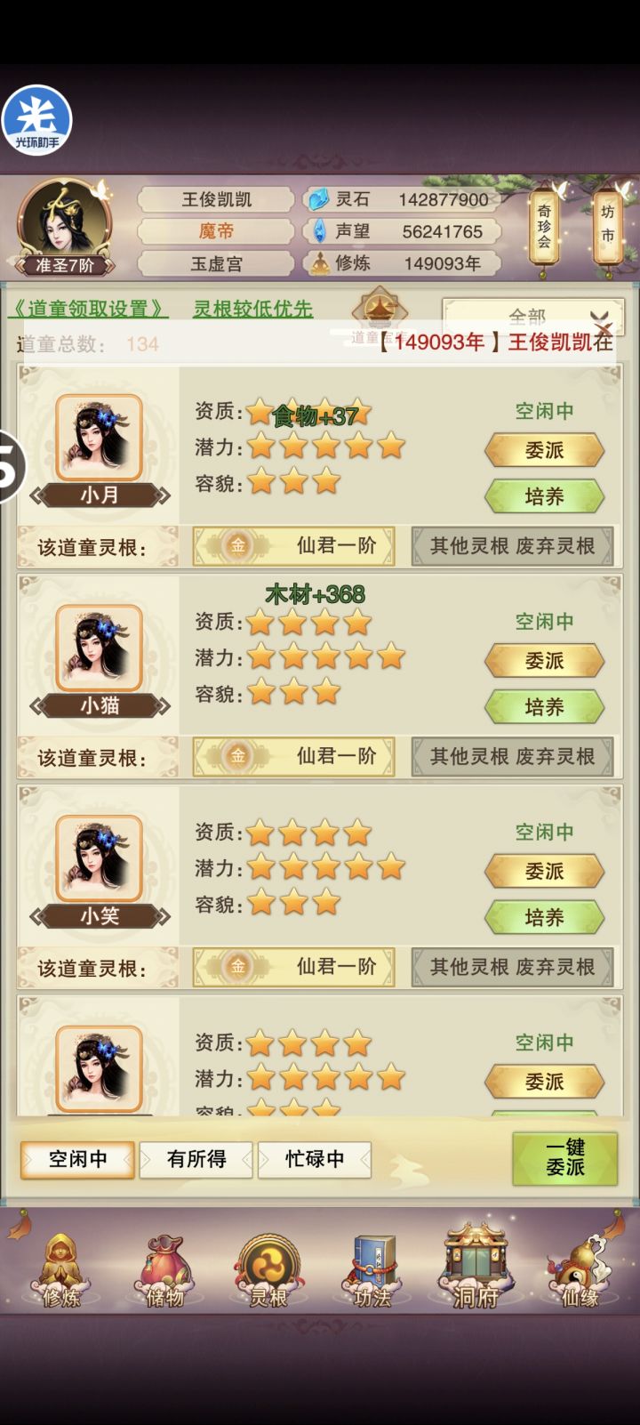 新成就达成,所有道童仙君灵根