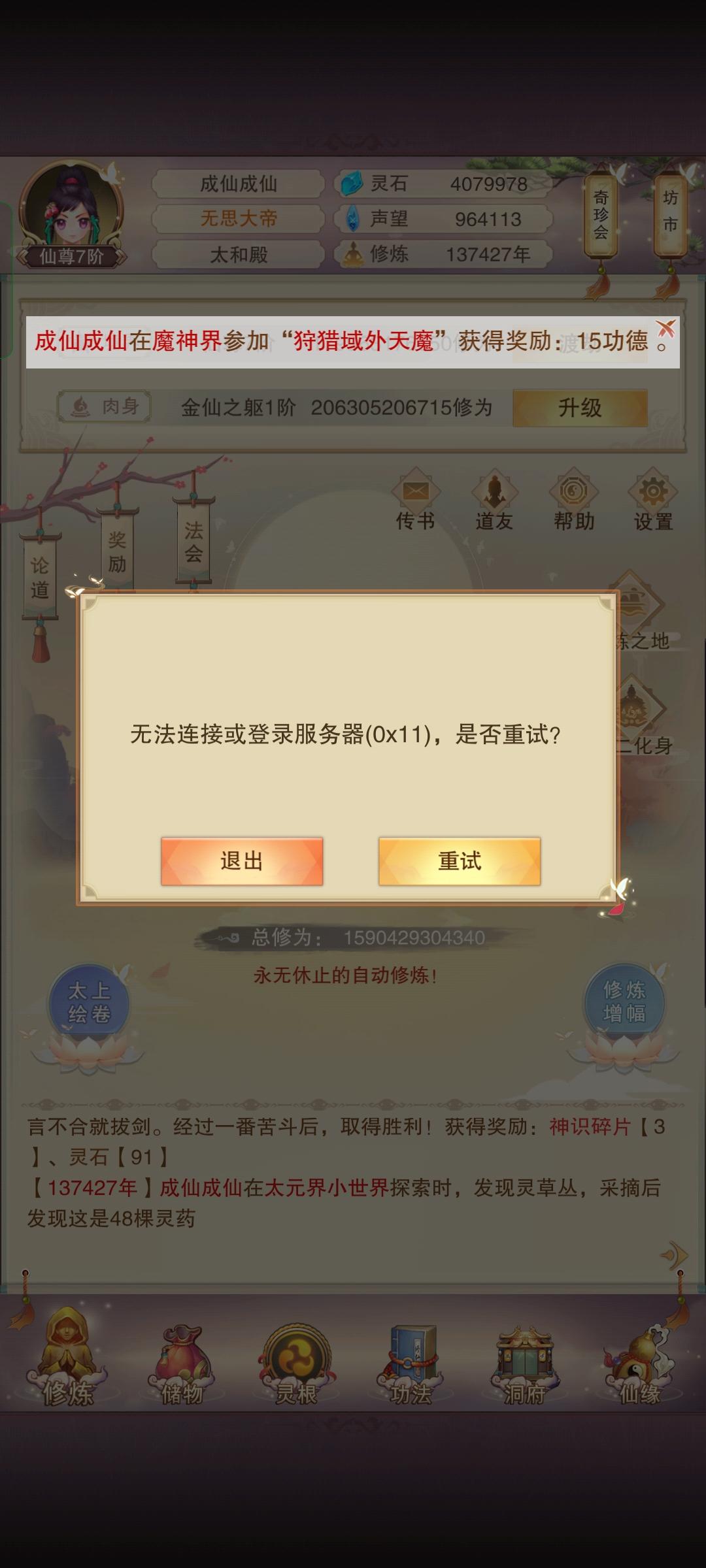 想不想修真物品bug,之前我的47宠物经验丹返回领取消失后才知道这个bug,你的背包空间比较少的时候会触发,有一定的空间情况下一键领取,溢出的物品装不下去会直接消失,而不是提醒你包裹不足。 包裹不足在只有几个空间会提醒,比较多的空间不会提醒你,会显示吞了你的物品,道友们领取需要谨慎! 视频为打劫鬼市测试,前未录取视频,打劫的仙书坊,低等级的物品会直接被高等级的物品覆盖掉(一星书会被高星书直接覆盖,同一批领取才会被覆盖)附带测试视频。 测试背包容量112/140,领取鬼市打劫物品,鬼市由于丹药100所以会多占一格。3层12✘3=36+丹药多出3=39格。 没有多的空间,很多东西都直接消失了。不会发放,所以平时有很多东西直接消失了也不知道,希望官方尽早修复。 特别是我的那47级经验丹尽早补偿给我