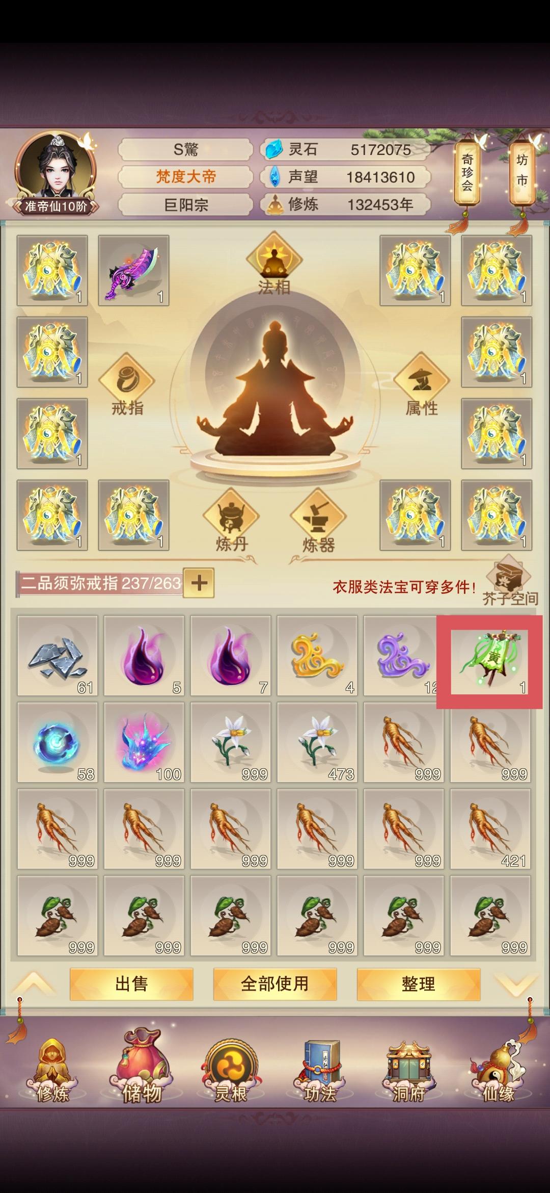 可以增加妖魔鬼仙佛,每一个选修独有的圣物,或者圣器,