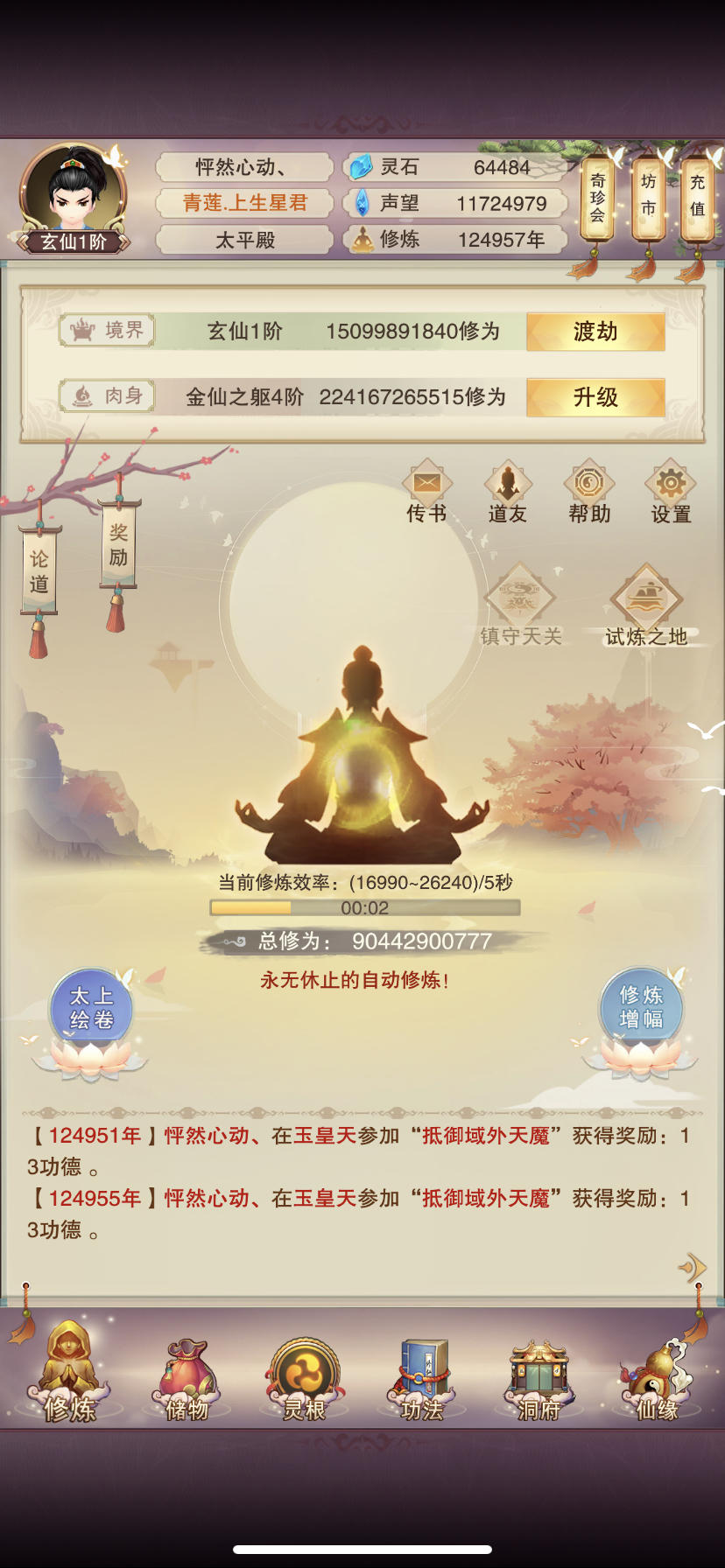 聚灵阵339了,七百个技能,半小时 上线一次,这么搞也太繁琐了吧。能不能给聚灵阵搞个仓库啊。容量暂定聚灵阵的十倍。单次使用灵气量不能超过聚灵阵容量。这样五个小时上线一次,就不会那么烦了。
